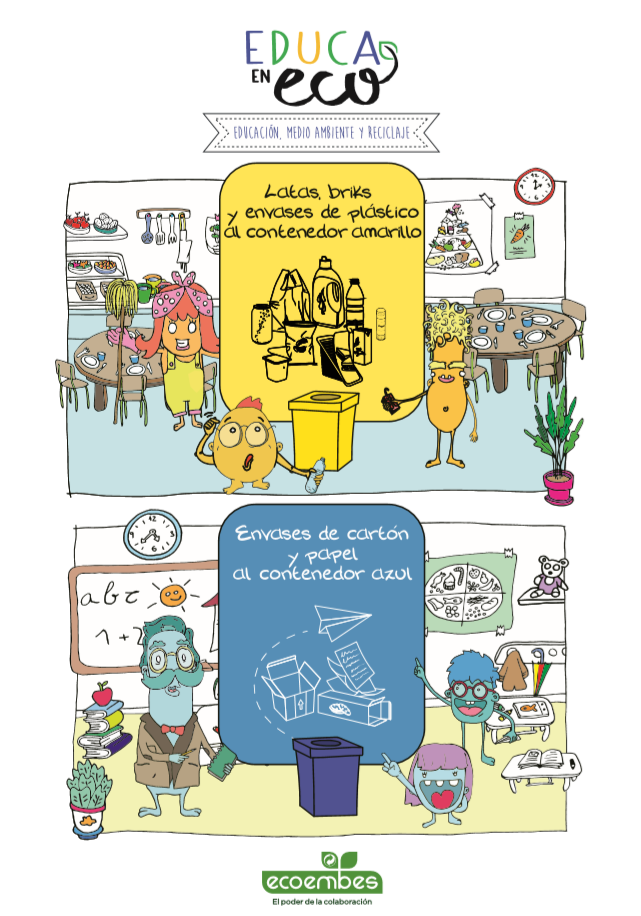 Los días 6 y 7 de febrero nuestro colegio ha realizado unas charlas de EDUCA EN ECO con EcoEmbes. No solo los alumnos, también maestros, oficiales de mantenimiento, personal de limpieza, auxiliares de cocina... Queremos conseguir que nuestro centro recicle todo los desechos que genere. Con los almuerzos tenemos muchos envases como botes de yogur, bricks de zumo, papel de plata, envoltorios. Además de todos los residuos de comedor que son muchos. Para ello, nos estamos concienciando y vamos a colocar papeleras amarillas y azules para todo el papel y plástico que utilicemos. ¡Vamos a luchar por un planeta limpio y sano!